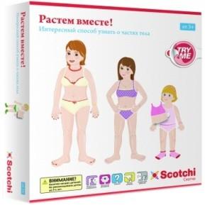 В набор входит: 6 фигур ( 3 двухсторонние фигуры), 36 карточек частей тела (ноги, руки, туловище и т.д. )