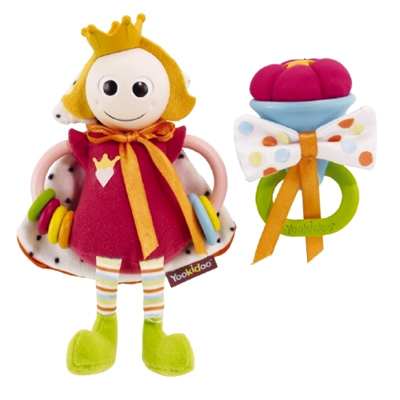 Игрушка Принц*есса/принц выполнена из мягкого покрытия, с короной из материала для жевания, мантией со складками, с цветными бусинками и разного цвета для исследования.